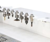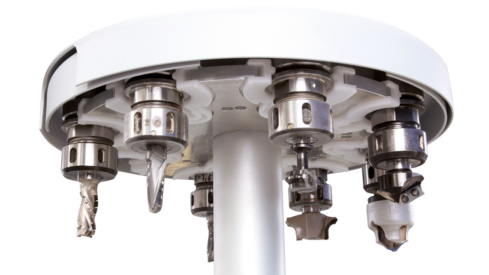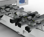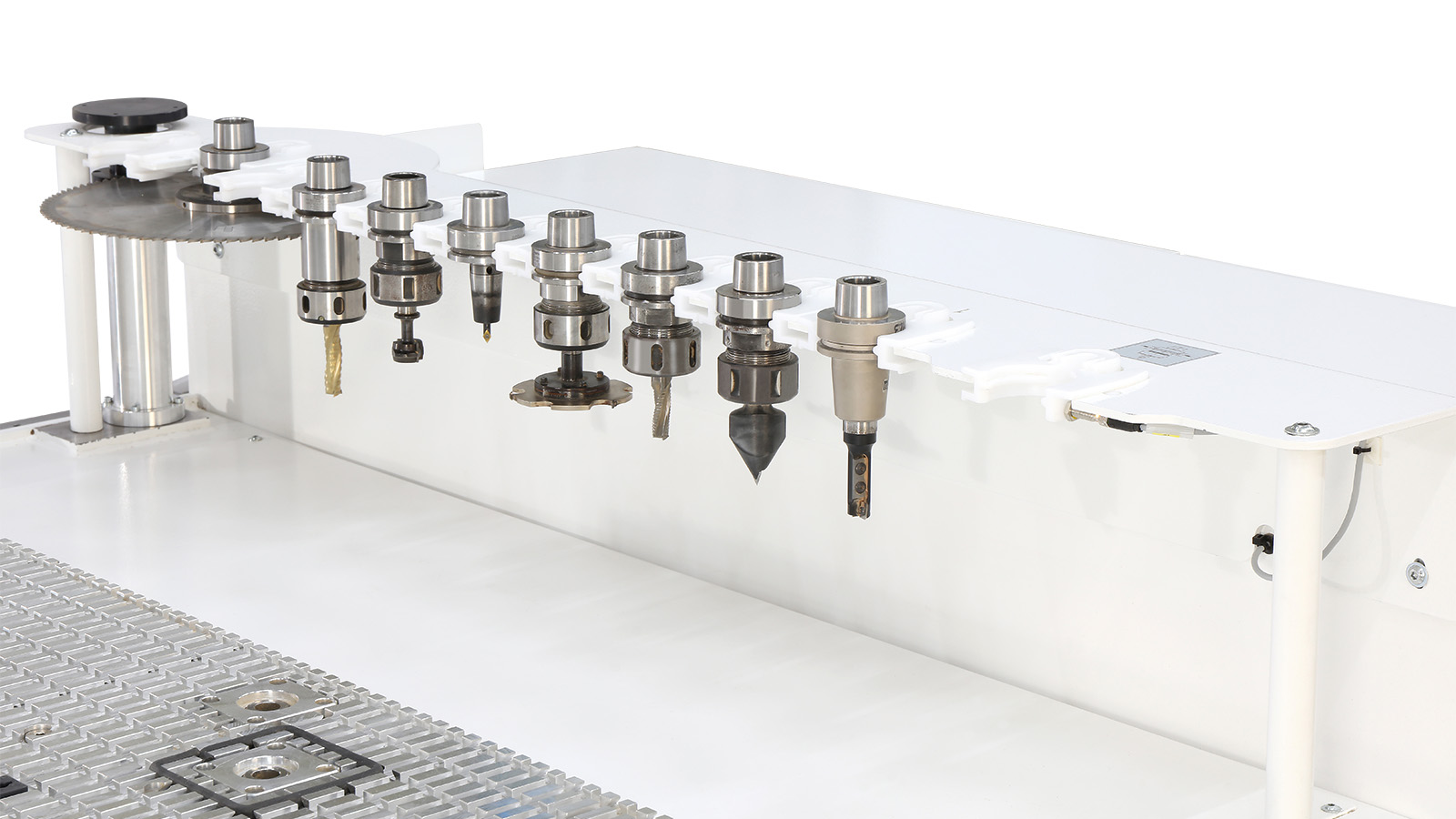 Vse varno shranjeno in hitro dostopno. Menjalniki orodij so osnova za prilagodljivo uporabo – bodisi kot linearni menjalni sistem ob strani (na sliki) ali kot sistem, ki se premika skupaj z vretenom.
